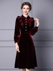 Pinkoz 滑走路デザイナーベルベットブルゴーニュミディドレスシャーリング襟長袖秋冬ポケットエレガントドレスヴィンテージ traf ロング ピンク オータム 秋物 ウィンター 冬物 ビンテージ