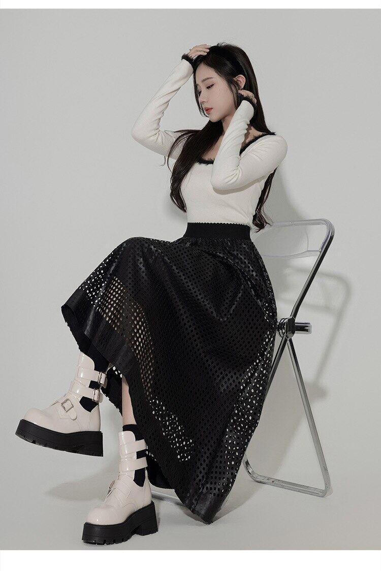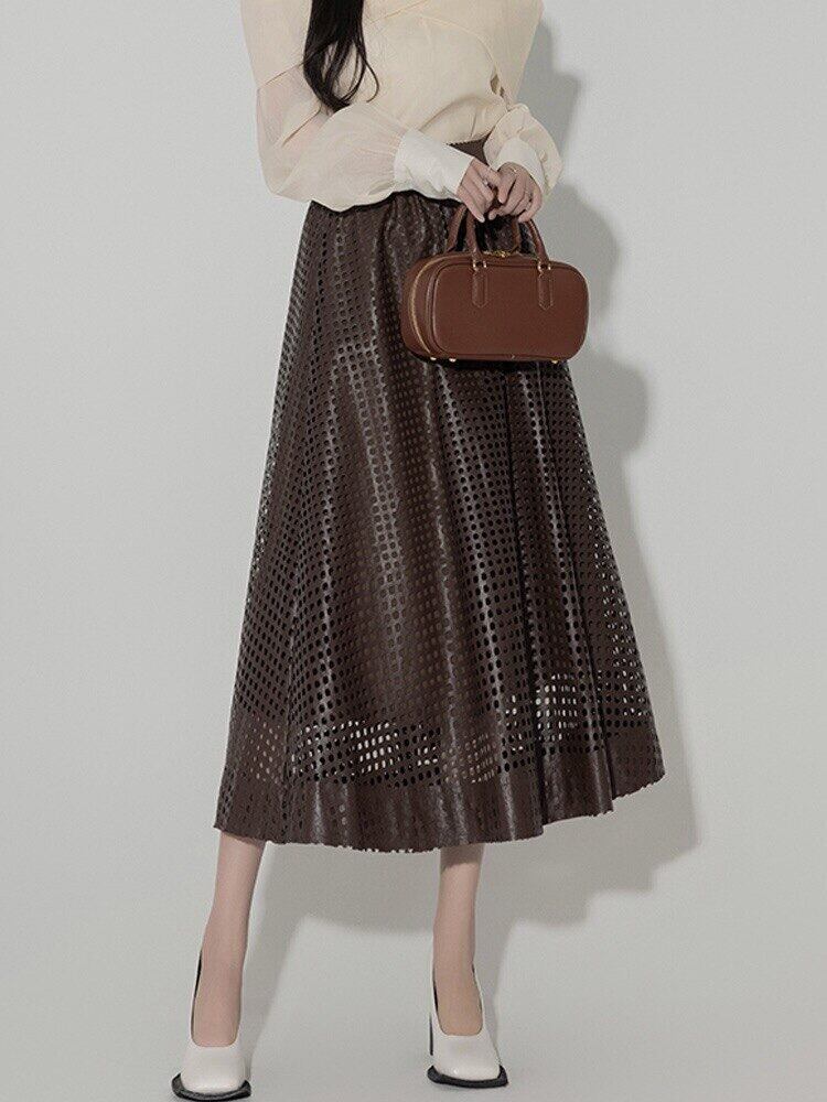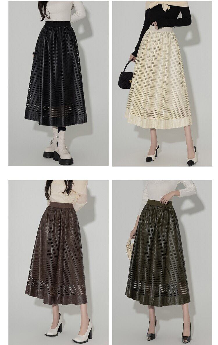 Pinkoz 2024 春秋新ファッションハイウエスト PU レザーマキシロングスカートエレガントナイトカジュアルボトムスカートヴィンテージ ハイウェスト ピンク スプリング 春物 オータム 秋物 ビンテージ