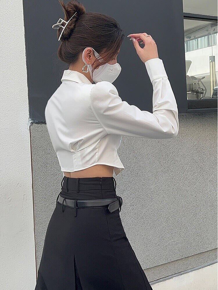 Pinkoz デザイナーショートホワイトトップスシングルブレストターンダウンカラー長袖カジュアルハイストリート服 Y2K 新しいシャツブラウス ロング ピンク
