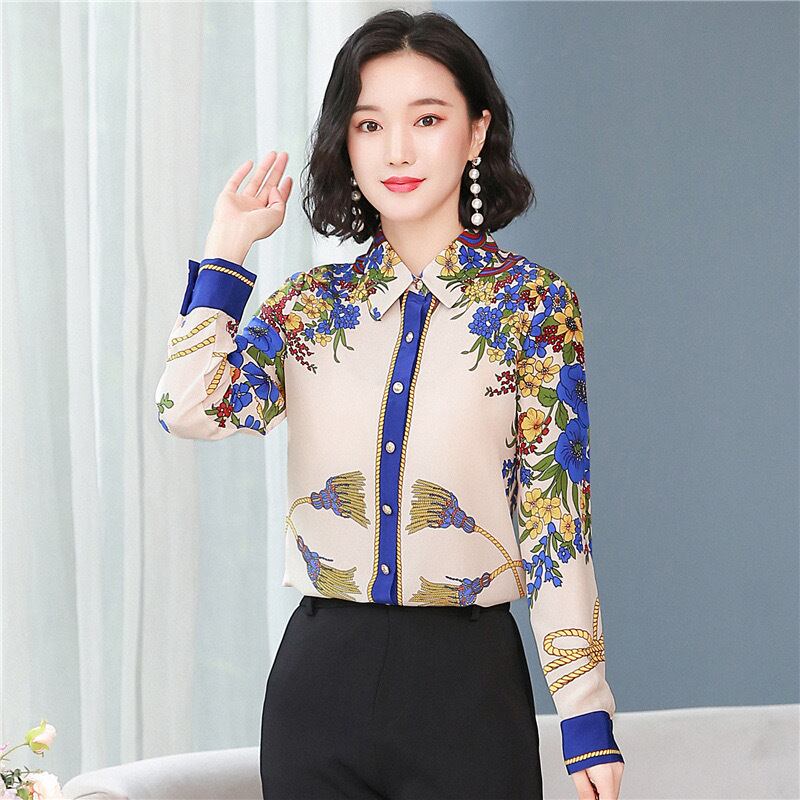 Pinkoz 春夏ショート花柄プリントターンダウンシュリッツファムブラウストップス roupas femininas frete grátis ヴィンテージ ピンク スプリング 春物 サマー 夏物 フェミニン ビンテージ