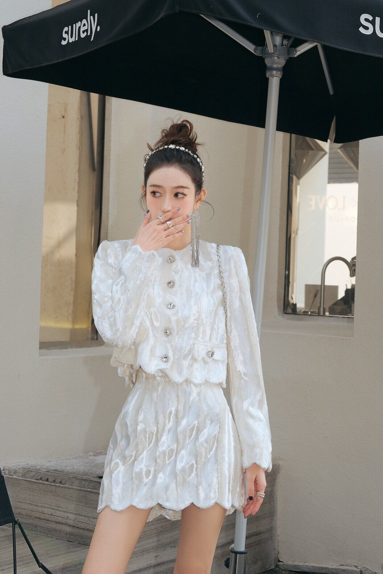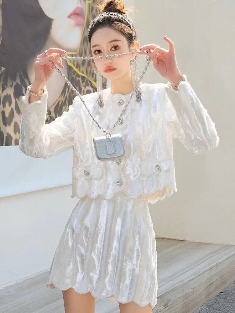 Pinkoz 滑走路デザイナー 2 枚セット白高級シングルブレストボタンジャケット秋冬トップスミニスカートスーツ traf ピンク ホワイト オータム 秋物 ウィンター 冬物