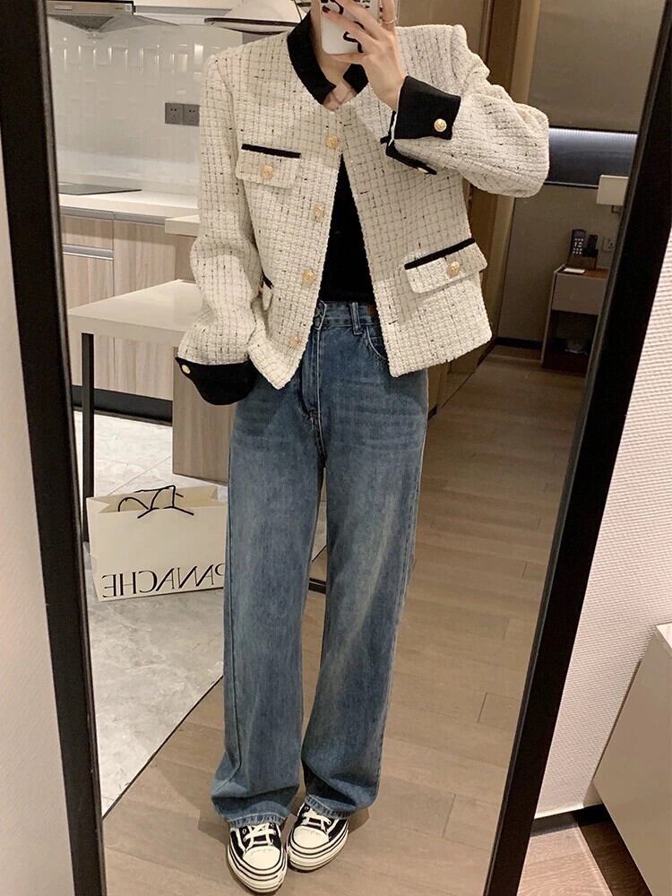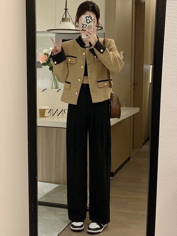 Pinkoz 秋冬新ファッションベージュパッチワーク長袖エレガントシングルブレストオーバーコートデザイナーベストファムジャケット ロング ピンク オータム 秋物 ウィンター 冬物 フェミニン