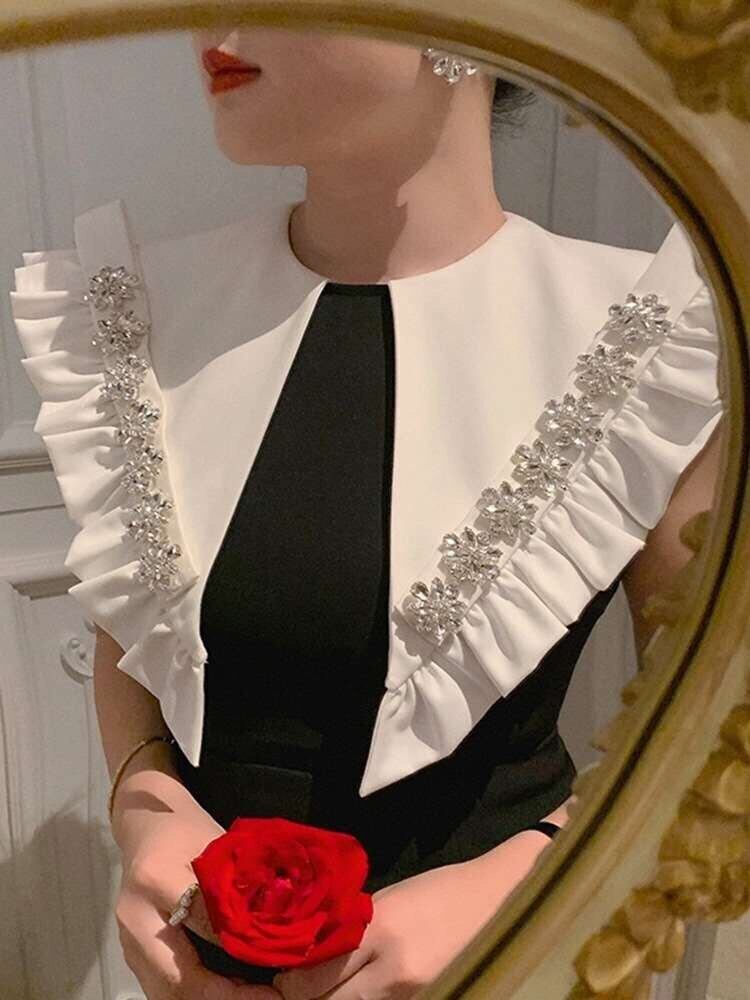 Pinkoz ヴィンテージ Vestidos ホワイトピーターパン襟ペンシ黒ミニドレスビーズシャーリングパーティーナイトファッション衣類 traf ピンク ブラック ビンテージ