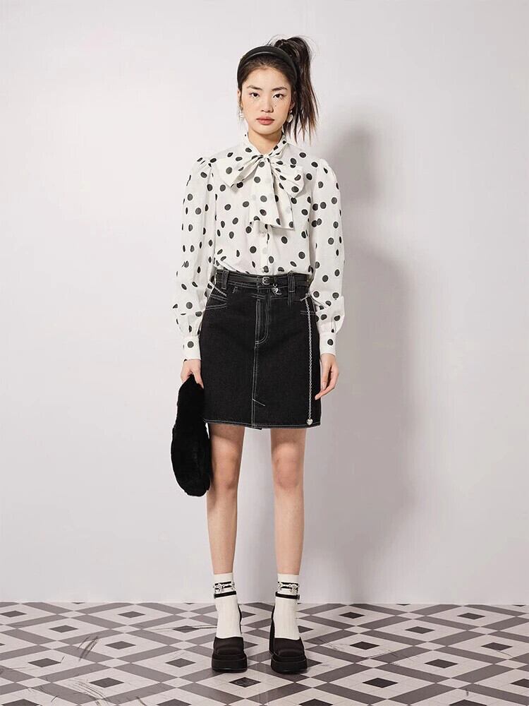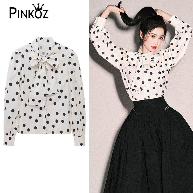 Pinkoz 滑走路デザイナー有名人水玉模様リボンカラーシャツシフォンヴィンテージナイトファッションシックブラウスヘップバーンカジュアル za トップス ピンク ビンテージ