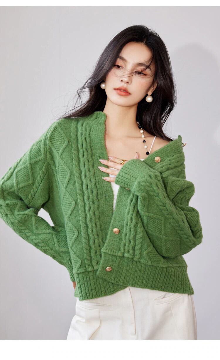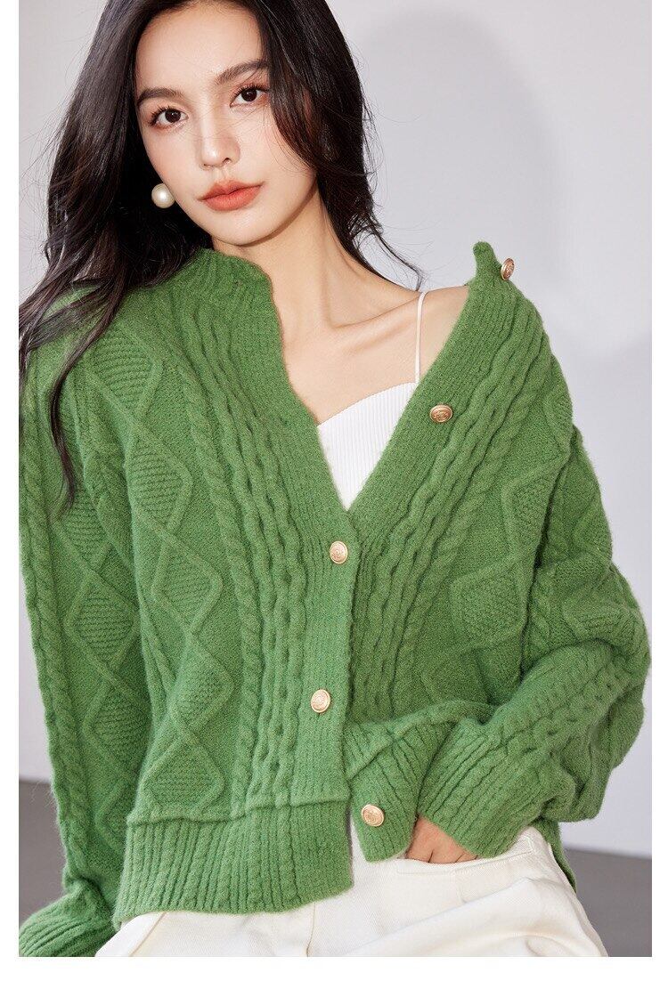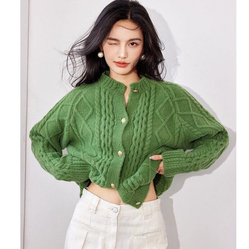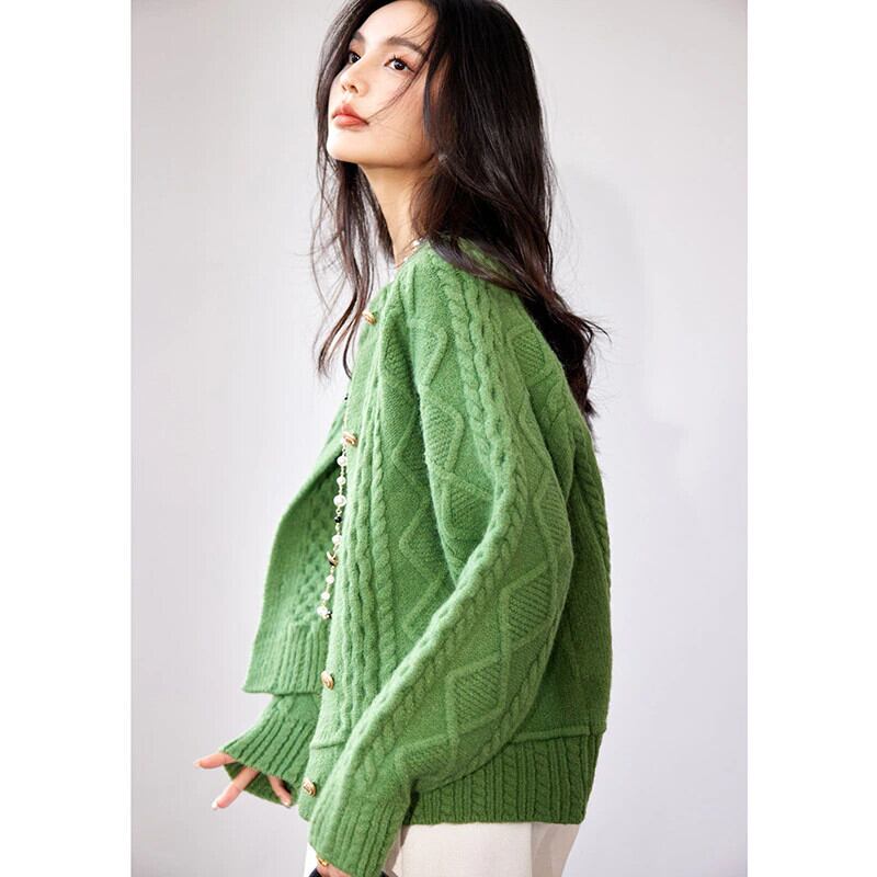 Pinkoz 滑走路デザイナーグリーン秋冬カーディガンシングルブレストルーズストリートカジュアルファム服セーターナイト traf ピンク オータム 秋物 ウィンター 冬物 フェミニン
