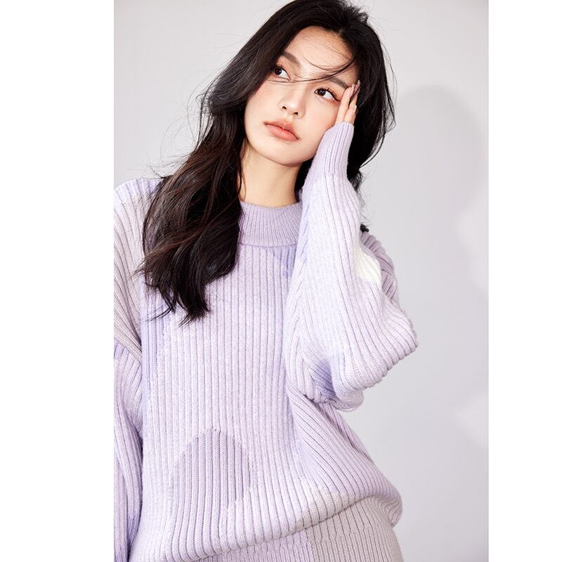 Pinkoz 滑走路 desigenr ピンクバイオレット冬服甘いかわいい o ネックセーターカジュアルルーズ長袖ストリートニットトップス za ロング 大人ガーリー スウィート キュート ウィンター 冬物 Oネック