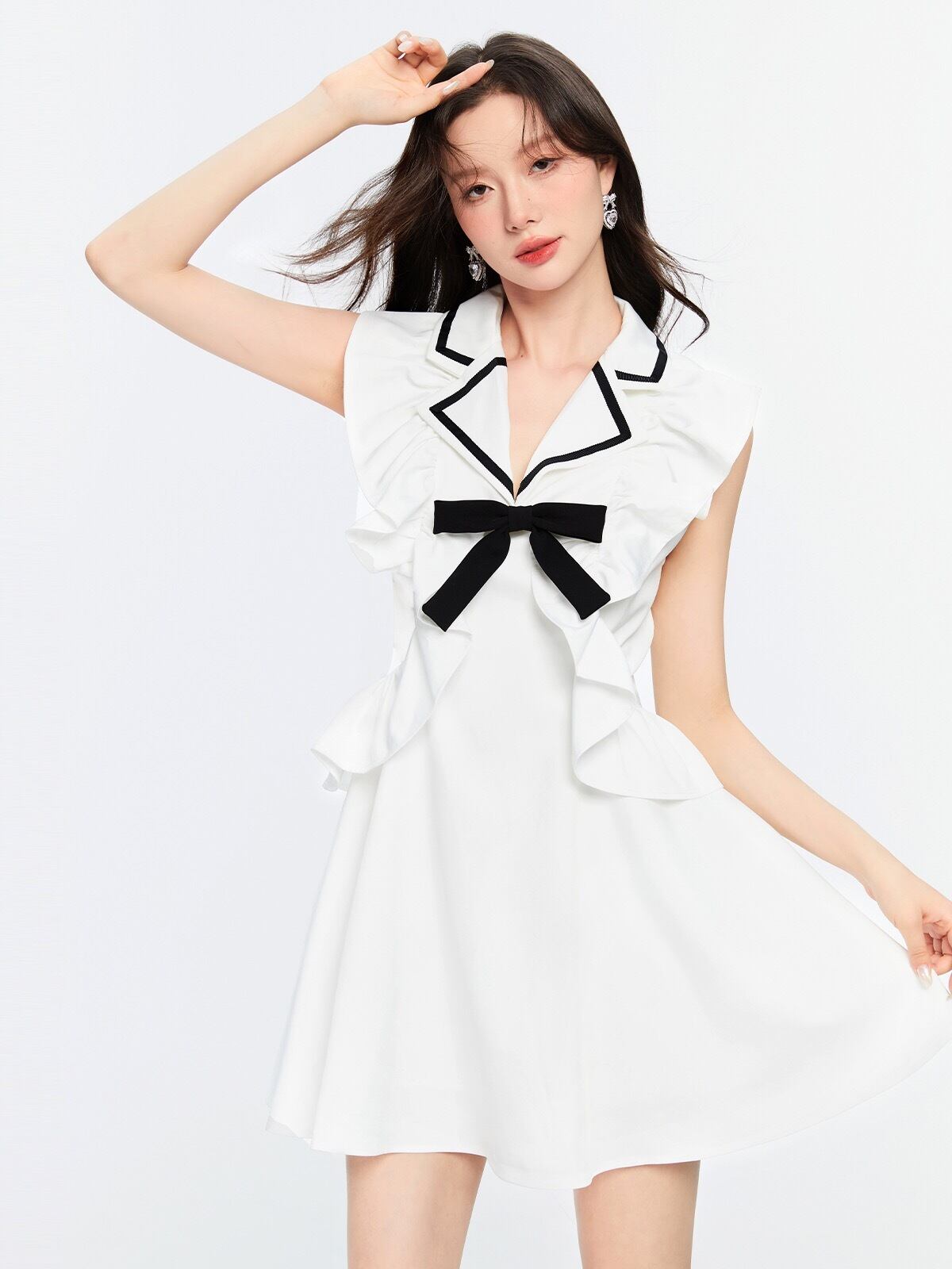 Pinkoz ミニ A ラインドレスセレブスタイリッシュ弓甘いかわいいショートドレスパーティーナイト Vestido フィエスタヴィンテージ ZA ピンク リボン 大人ガーリー スウィート キュート カジュアル Aライン ビンテージ