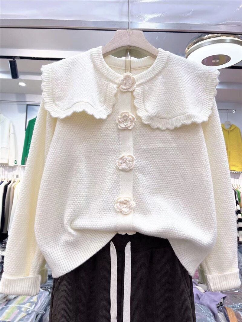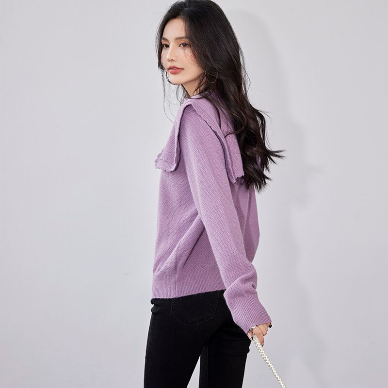 Pinkoz パープルセーター 2024 秋冬ピーターパン襟シングルブレストカジュアルカーディガンハイストリートボタン服シック ピンク オータム 秋物 ウィンター 冬物