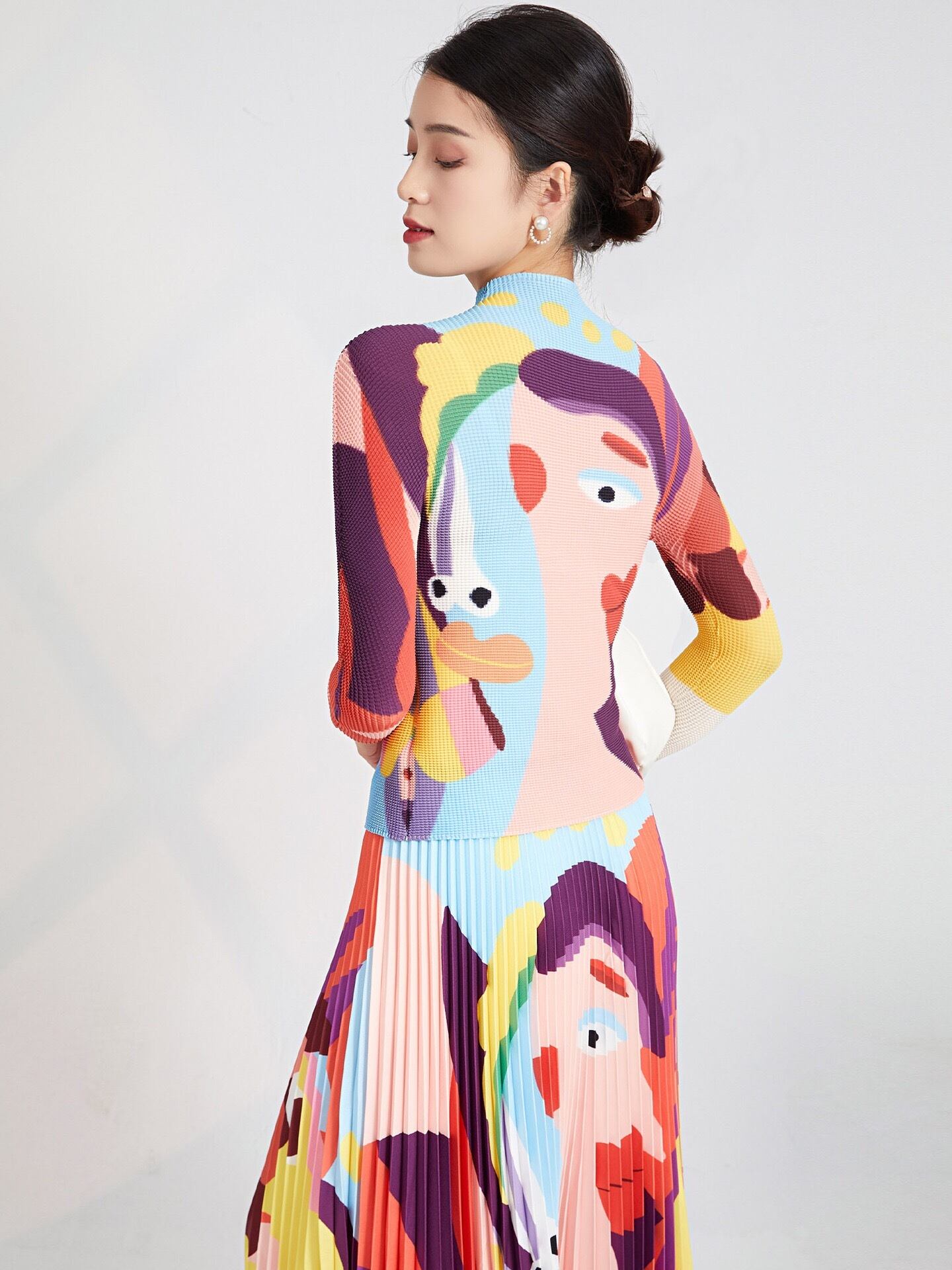 Pinkoz 滑走路デザイナー 2 枚セットプリーツスタンドカラー秋冬トップスプリーツミディロングスカートカジュアル ピンク オータム 秋物 ウィンター 冬物