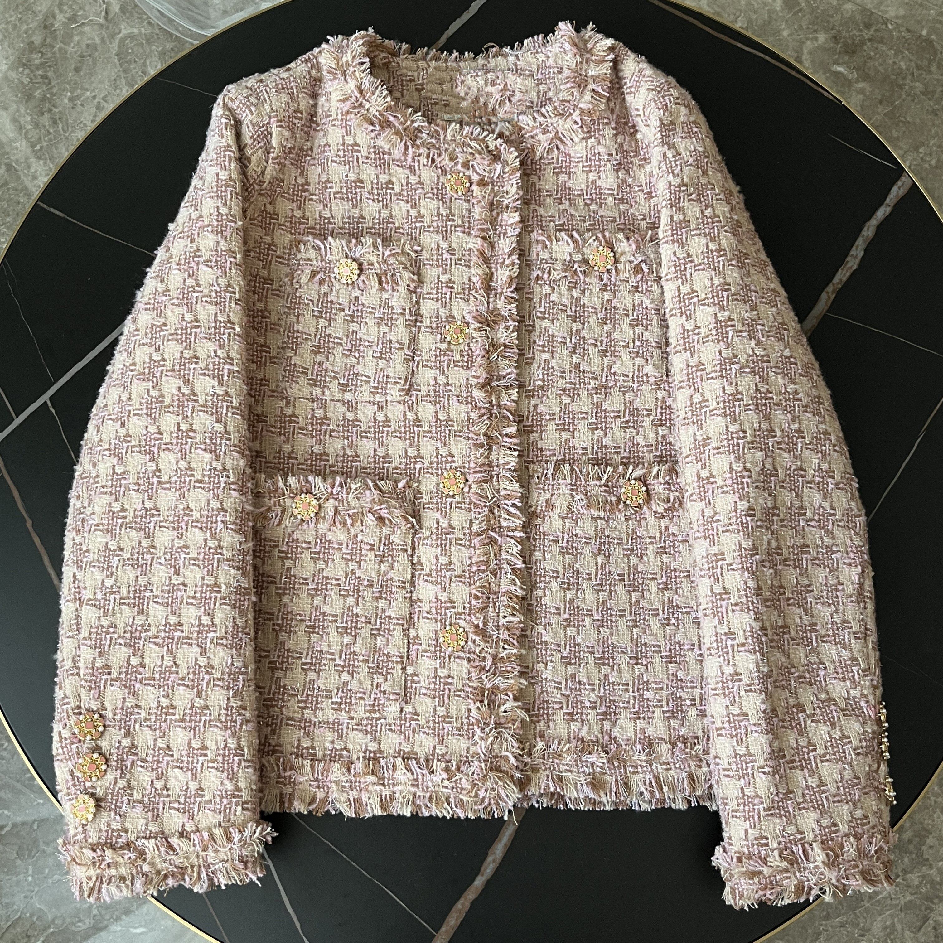 Pinkoz 新しいファッション秋冬チェック柄ショートジャケット高級パッチワークツイードエレガントデイリーオフィスレディオーバーコートトップス traf ピンク オータム 秋物 ウィンター 冬物 会社 学校 通勤や通学にも