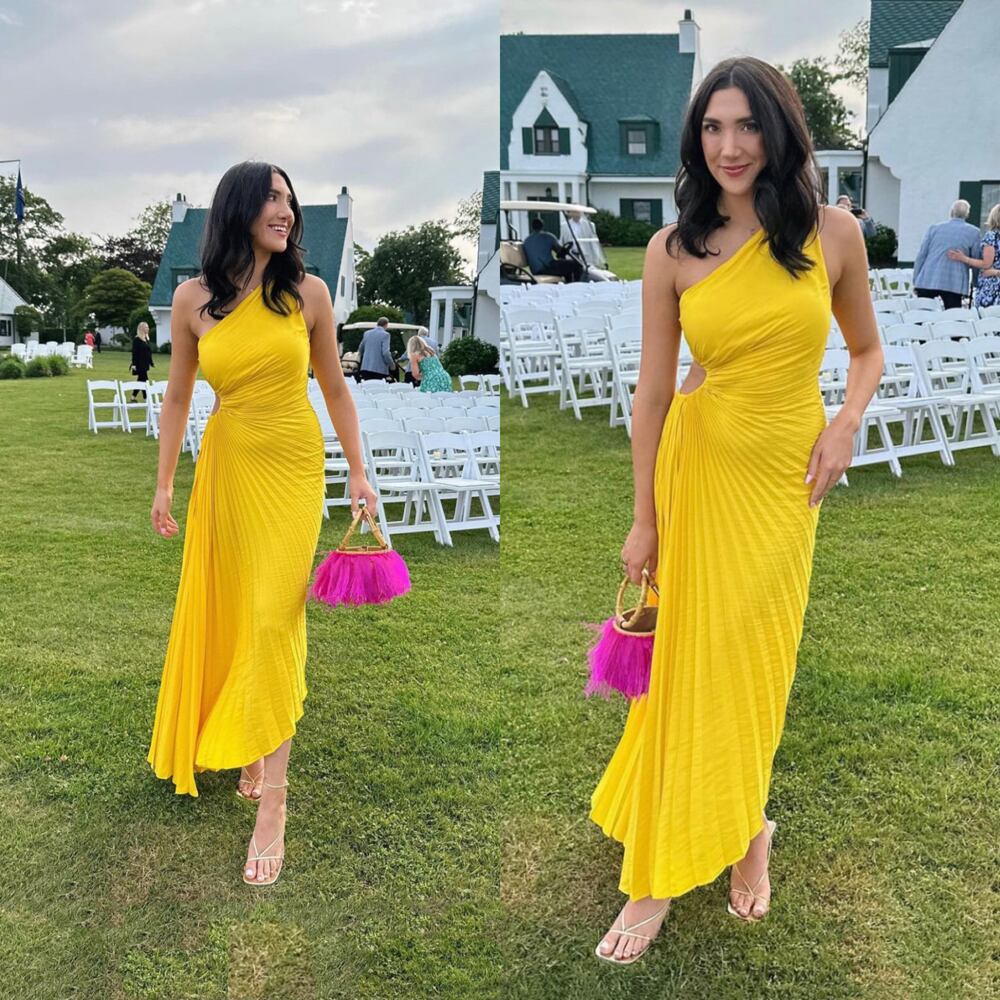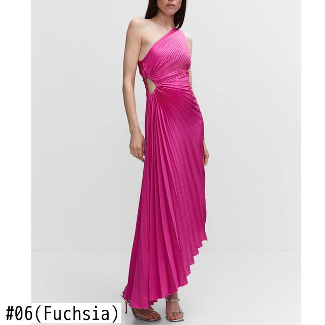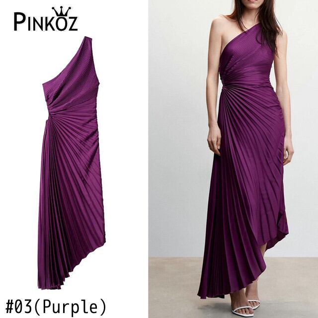 Pinkoz 滑走路ワンショルダーホールドパーティーナイトドレス不規則プリーツぬるぬる誕生日祭服ベスト ピンク