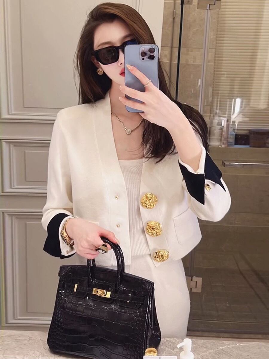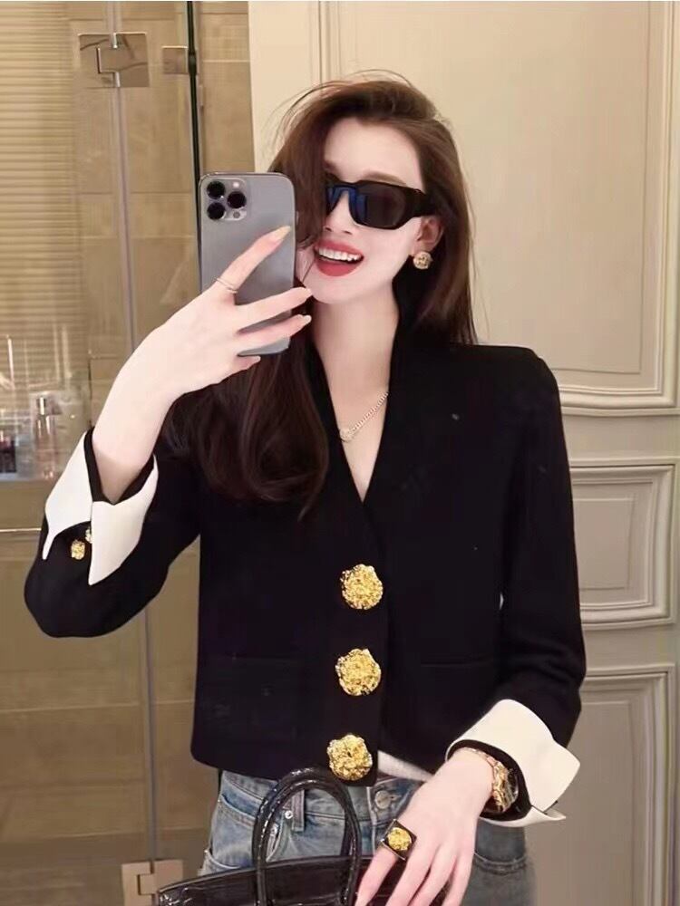 Pinkoz デザイナー白黒シングルブレストボタンフルスリーブ秋冬ナイトカーディガンセーターニットジャケットヴィンテージ新しい ピンク ホワイト ブラック オータム 秋物 ウィンター 冬物 ビンテージ