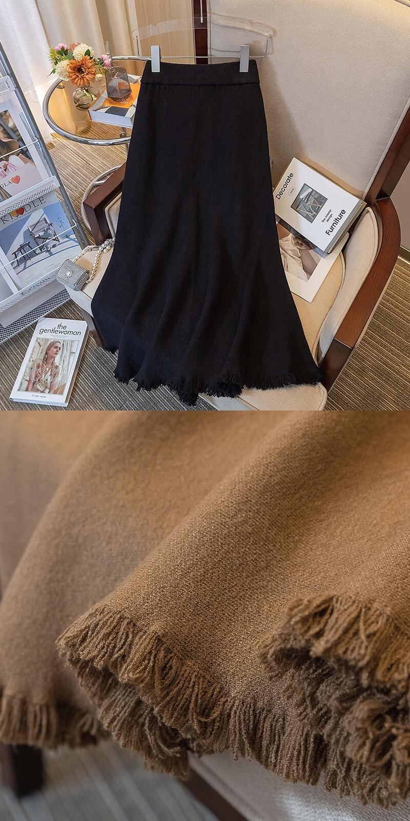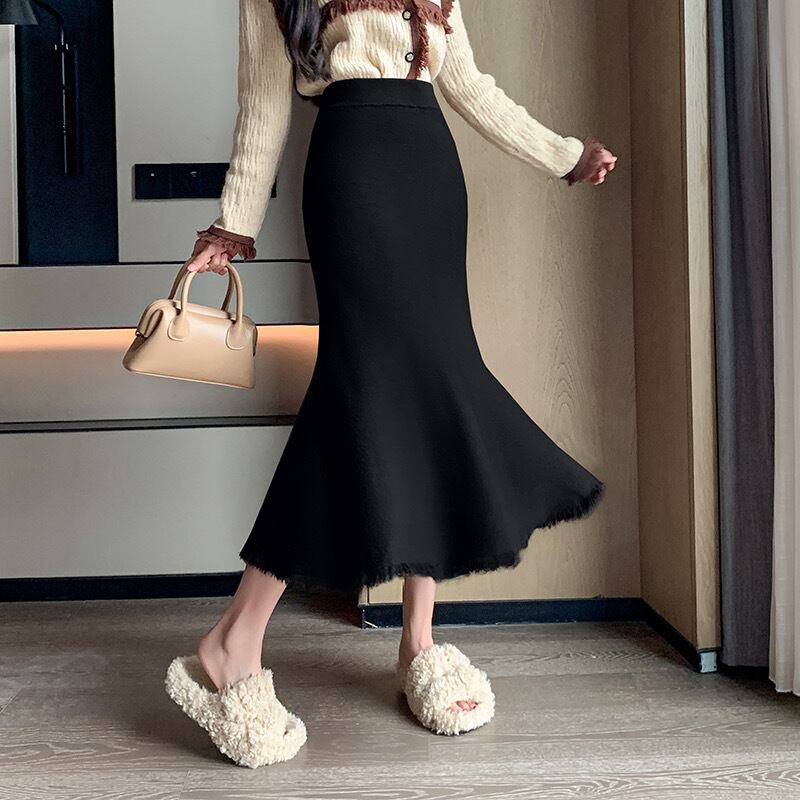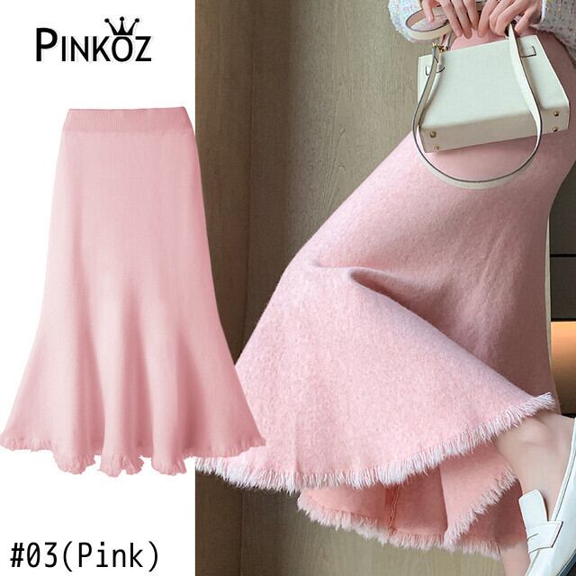 Pinkoz ニットミディスカートピンクハイウエストテルぬるぬるマーメイドロング甘いかわいいファッション服スカート ハイウェスト 大人ガーリー スウィート キュート カジュアル