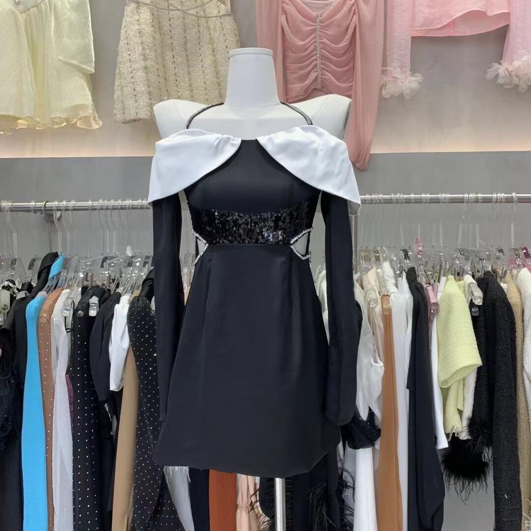 Pinkoz 滑走路デザイナーホロアウト黒、白ホルターミニドレススパンコール A ラインサテンパーティーナイトクラブセクシードレス新しい ピンク ホワイト ブラック Aライン