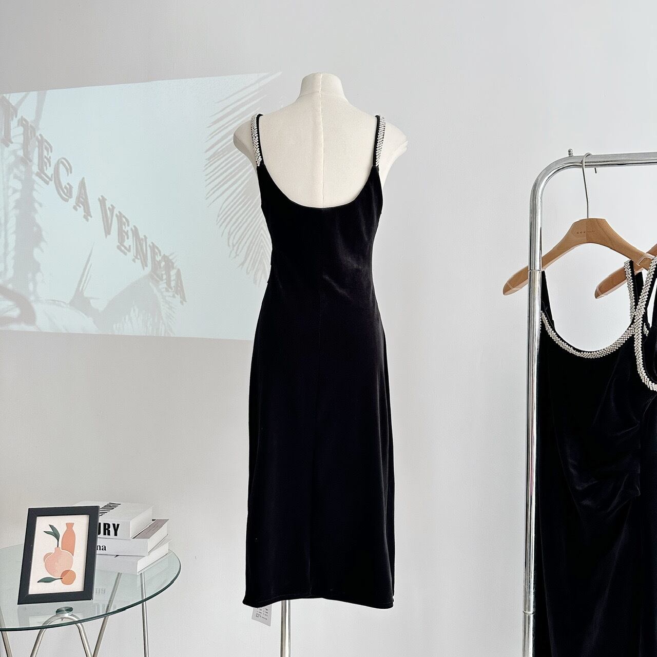 Pinkoz デザイナークリスタル U ネックセクシースパゲッティストラップ黒ミディドレスぬるぬるセクシークラブ高級ペンシルドレス Vestidos traf ピンク ブラック