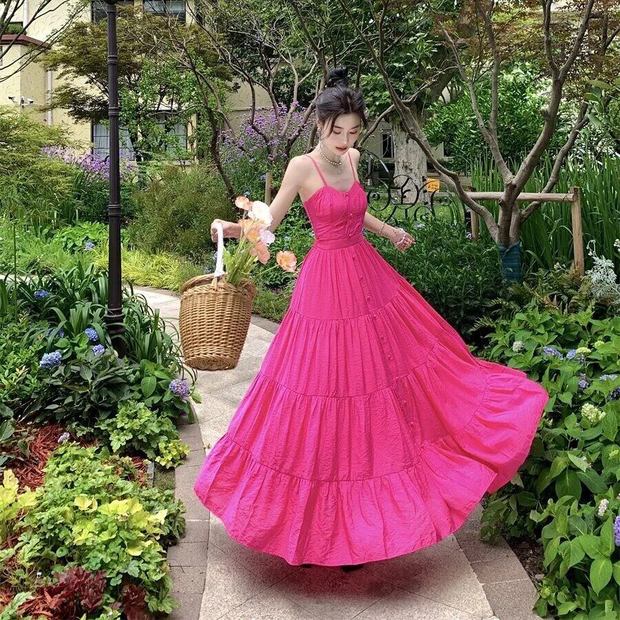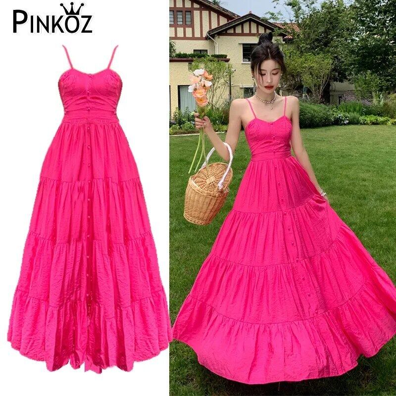 Pinkoz デザイナーファッションスパゲッティストラップマキシドレスぬるぬる背中開いた弓ブルゴーニュローブデムジェ Vestidos ヴィンテージ traf ピンク リボン ビンテージ