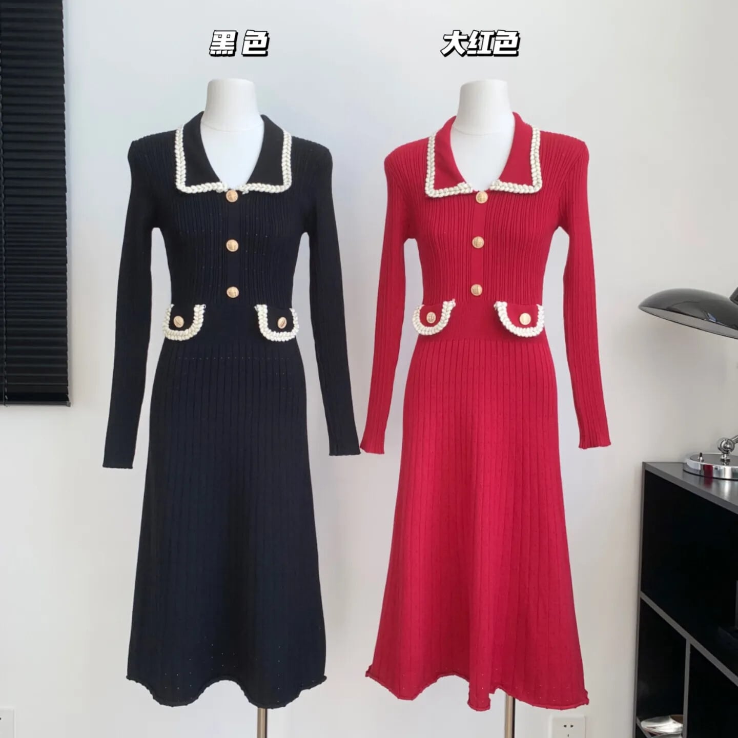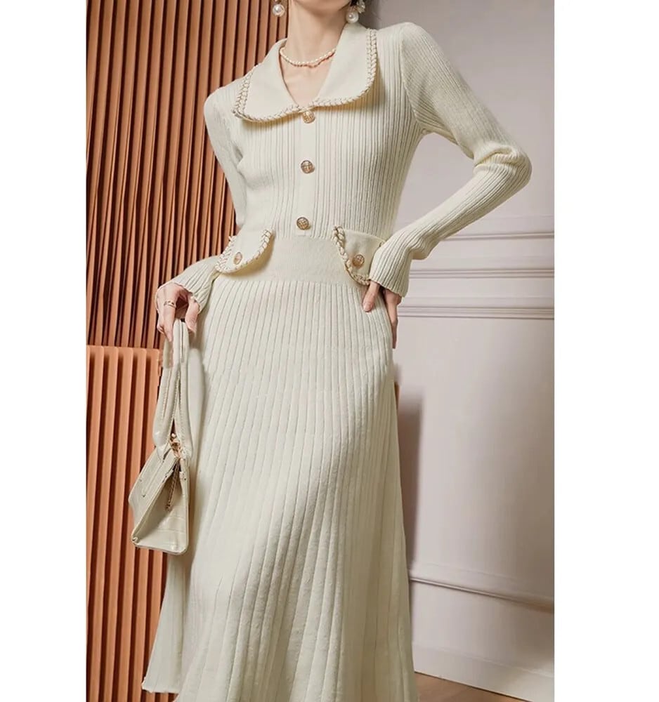 Pinkoz 2014 秋冬ベージュパッチワークニットミディ A ラインドレスポケットセータークリスマスローブ za ピンク オータム 秋物 ウィンター 冬物 Aライン