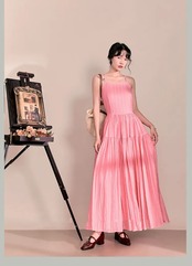Pinkoz デザイナースタイリッシュピンクマキシドレススパゲッティストラップレスぬるぬる夏春 Vestidos 休日自由奔放生きるローブデ traf スプリング 春物 サマー 夏物