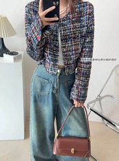 Pinkoz ランウェイデザイナーツイードジャケットショート o ネック長袖ボタンエレガントオフィスレディハイストリート衣類ショートコート traf z ロング ピンク Oネック 会社 学校 通勤や通学にも