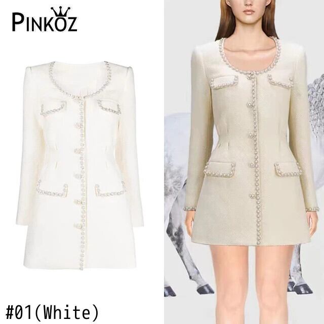 Pinkoz ホワイトミニドレススクエアカラー長袖ビーズクリスタルストレートドレスショートパーティー秋冬vestidos traf ロング ピンク オータム 秋物 ウィンター 冬物 スクウェア