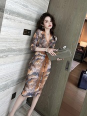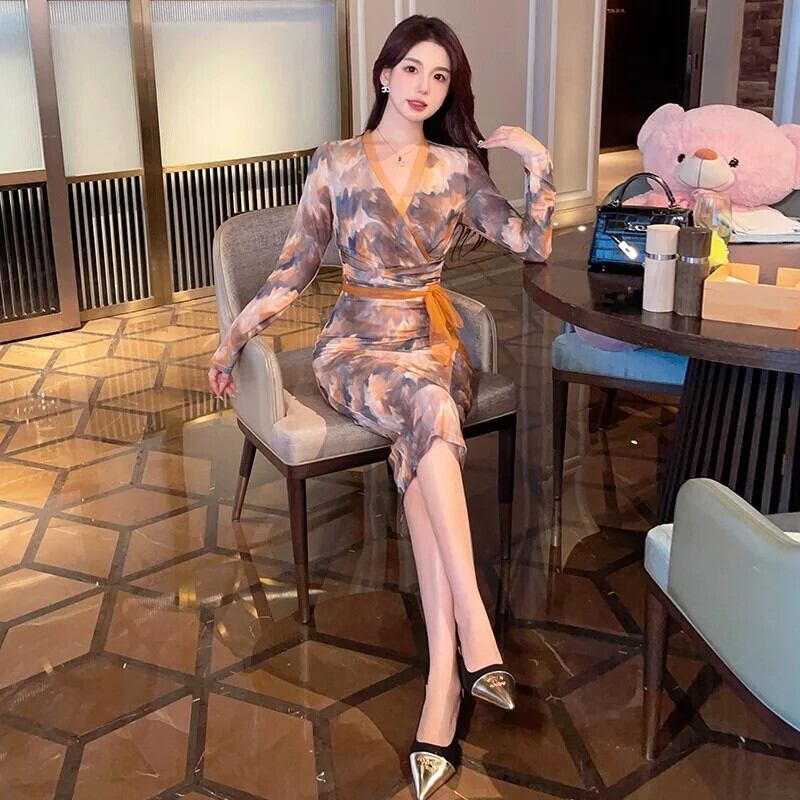 Pinkoz ファッション花柄ミディドレス v ネックメッシュぬるぬるペンシルドレスホリデービーチヴィンテージ Vestidos traf ローブ ピンク Vネック ビンテージ