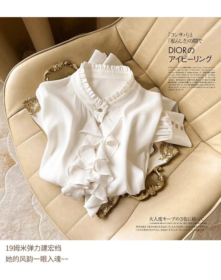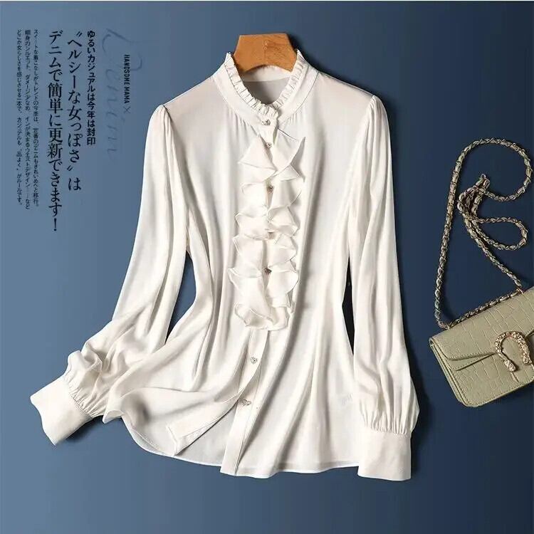 Pinkoz 滑走路デザイナースタイリッシュスタンドカラー白シングルブレスト滑走路シャツオフィスレディブラウスヴィンテージブラウストップス ピンク ホワイト ビンテージ 会社 学校 通勤や通学にも