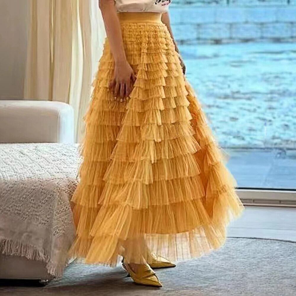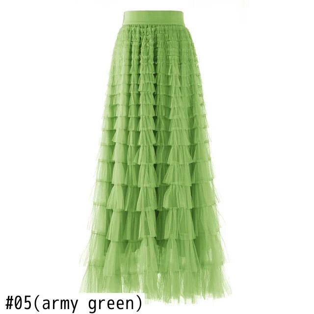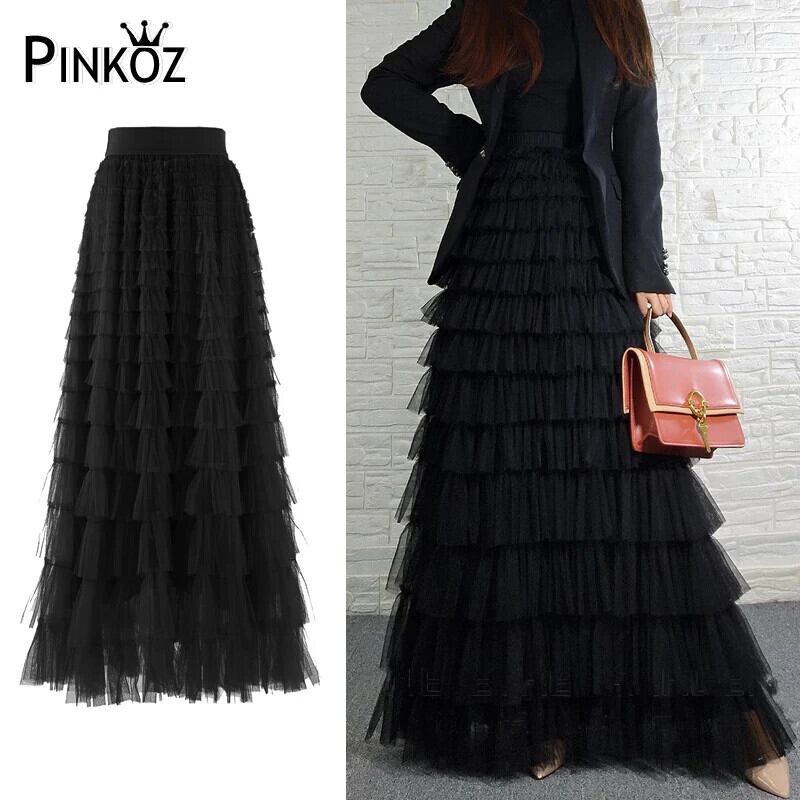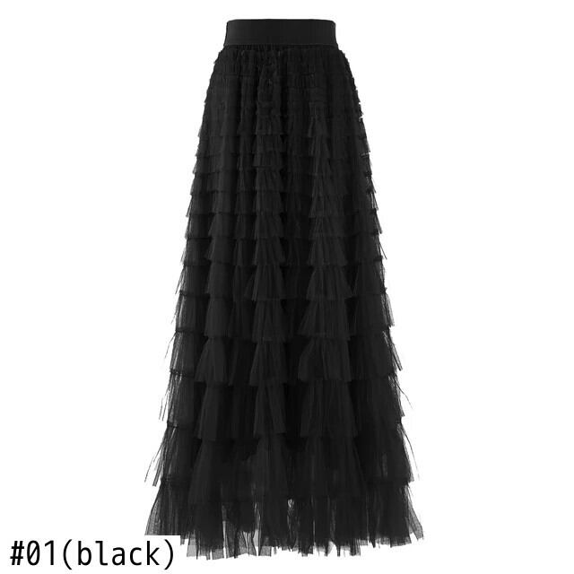 Pinkoz ランウェイデザイナーフリルハイウエストメッシュマキシスカートパーティーナイトディナーファムシックエレガントオフィスレディファルダローブデムジェ ハイウェスト ピンク ラッフル フェミニン 会社 学校 通勤や通学にも