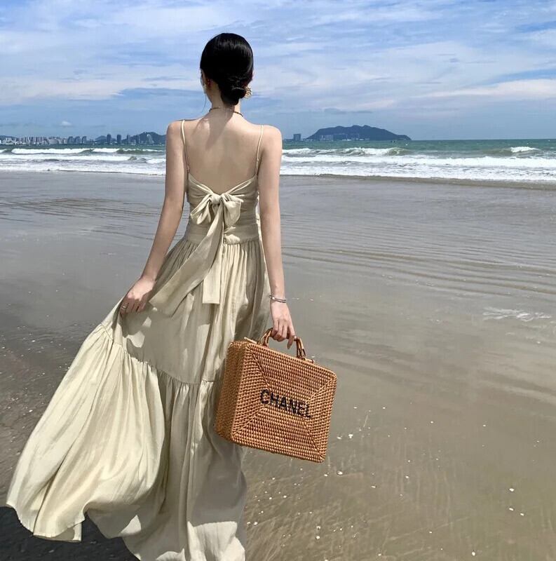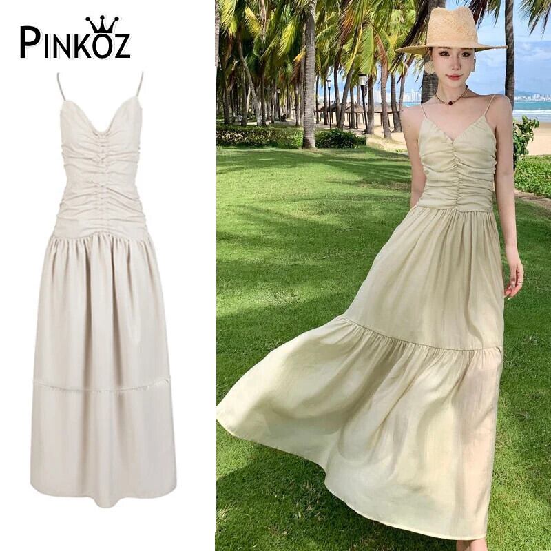 Pinkoz ランウェイ デザイナー スタイリッシュ V ネック スパゲッティ ストラップ ノースリーブ ホリデー バックレス リボン レースアップ ミディ A ライン シャーリング ドレス ヴィンテージ ピンク Vネック Aライン ビンテージ