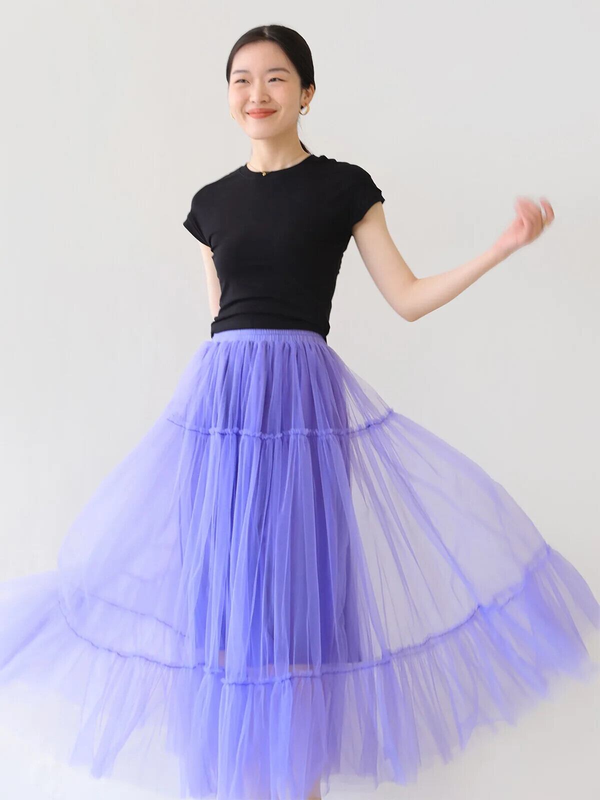 Pinkoz 滑走路デザイナー黄色メッシュマキシスカートパッチワークシャーリングロングファッションハイストリート衣料品 za ピンク