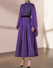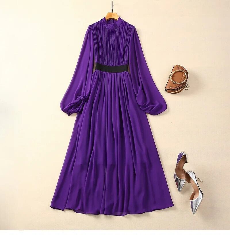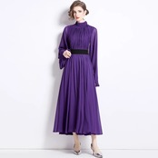 Pinkoz 滑走路デザイナーマキシパープルドレススタンドカラーランタンスリーブパーティー高級ファッションドレス ピンク