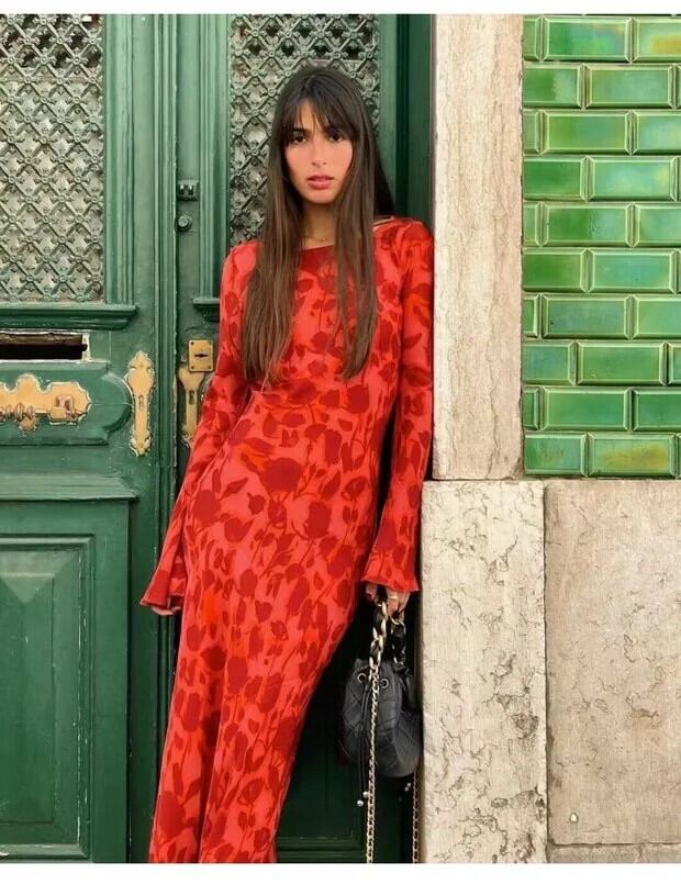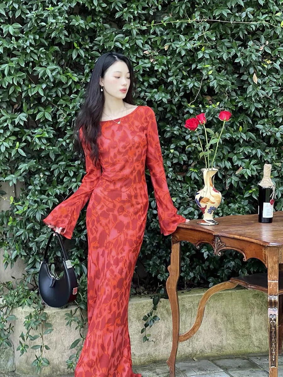Pinkoz デザイナーマキシドレス O ネックフレアノースリーブ春夏夏ロングドレス Vestidos ヴィンテージファッションシック ピンク フレアスリーブ スプリング 春物 サマー 夏物 Oネック ビンテージ