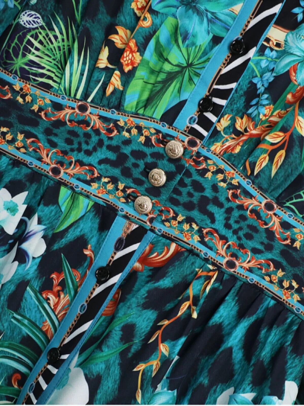 Pinkoz エレガントマキシドレスグリーン花柄ターンダウン襟シングルブレストボタンファッションドレスvestidos ピンク