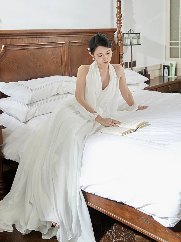 Pinkoz 滑走路デザイナー白いドレス v ネックシフォンホリデーパーティーウェディングドレススタイリッシュセレブ Vestidos ローブデ ピンク ホワイト Vネック