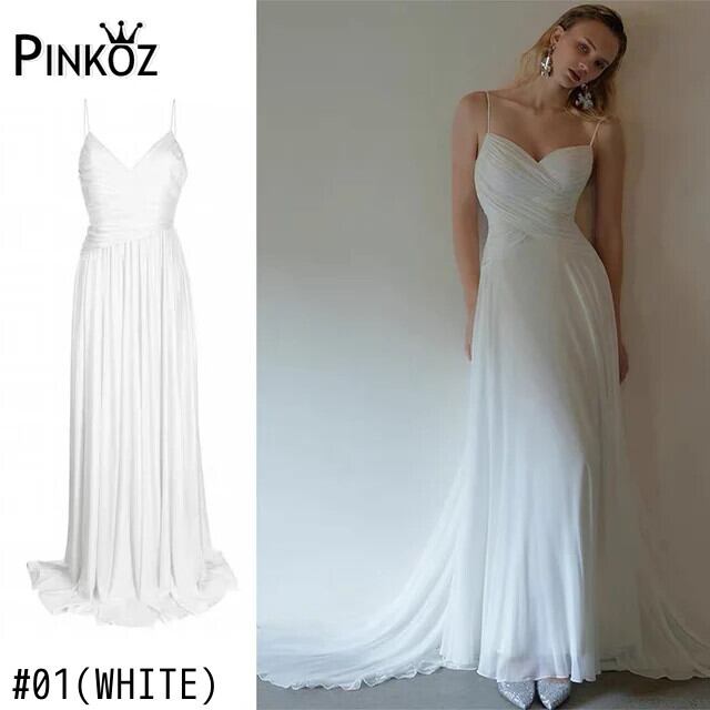 Pinkoz 白ドレス背中開いた v ネックマキシハイワーシト床長さ休日 INS a ラインウェディングパーティードレスファムヴィンテージ ピンク ホワイト Vネック Aライン フェミニン ビンテージ
