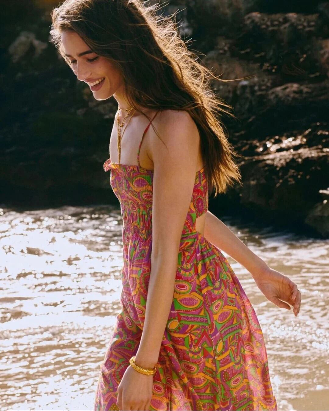 Pinkoz 滑走路デザイナーホリデー花柄スパゲッティストラップマキシドレスレッドバックレスボヘミアンロングドレスファッションvestidosローブ ピンク