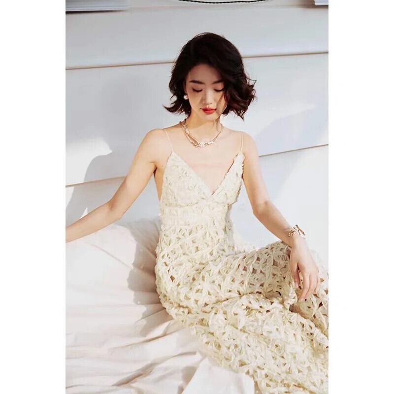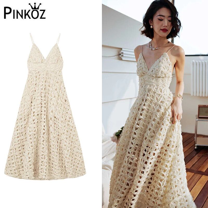 Pinkoz 春夏新ファッションベージュスパゲッティストラップミディパーティードレス高級ディナーキャミソールシック A ラインドレスvestidos ピンク スプリング 春物 サマー 夏物 Aライン