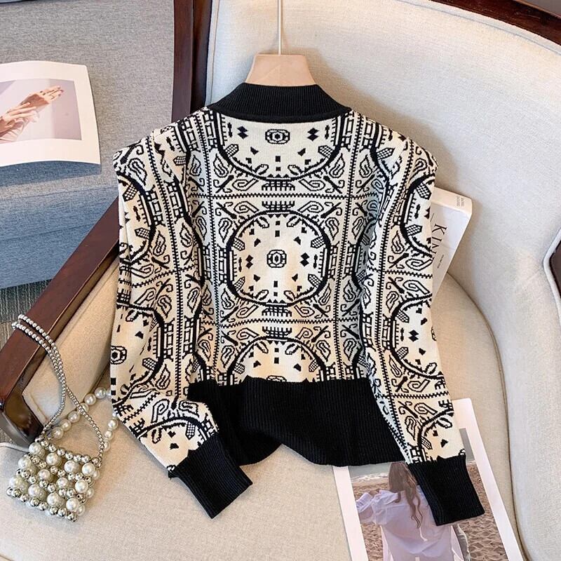 Pinkoz ヴィンテージルーズショートセーター秋冬カジュアルハイストリートグレーブラック花柄ニットプルオーバー ピンク オータム 秋物 ウィンター 冬物 ビンテージ