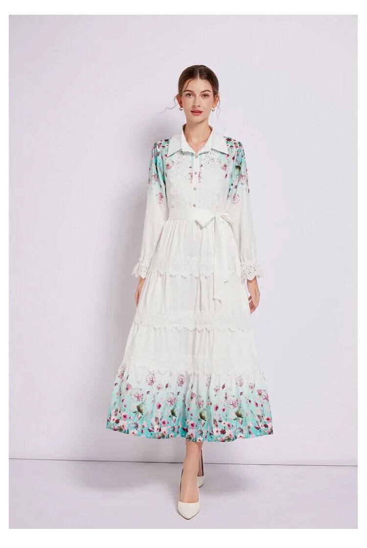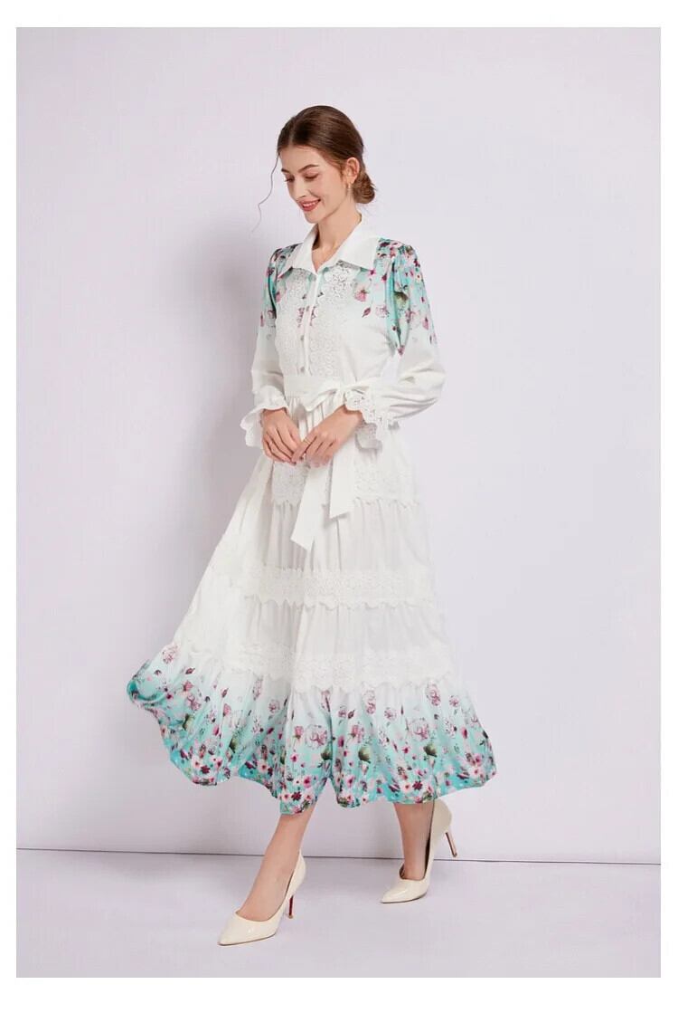 Pinkoz 夏ファッションターンダウン襟シングルブレストフローラパターンナイト長袖マキシドレスエレガント Vestidos ロング ピンク サマー 夏物