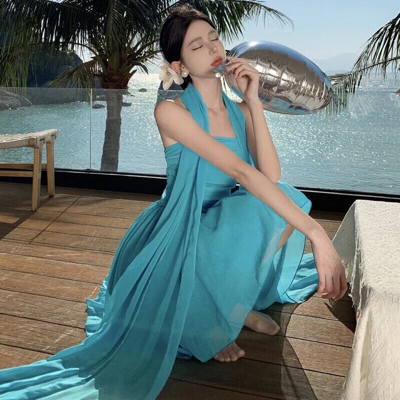 Pinkoz デザイナーストラップレスブルーシフォンぬるぬる A ラインミニドレスクリスタルパーティー誕生日職業リボンレースアップショート Vestidos ピンク Aライン