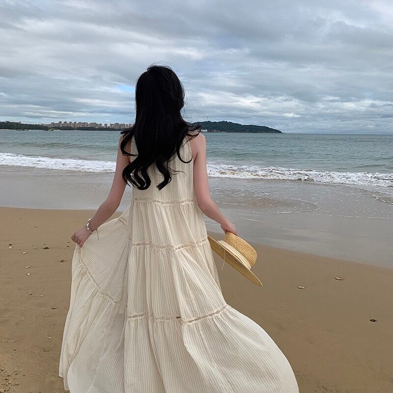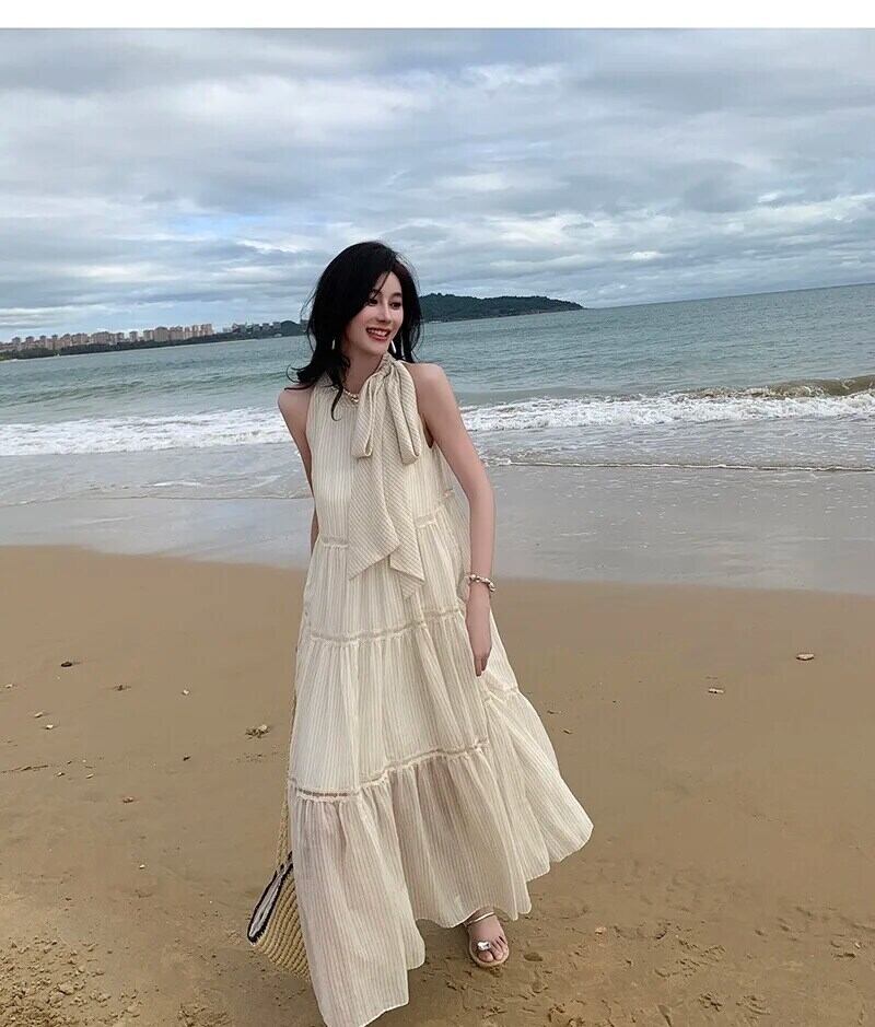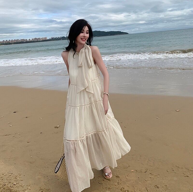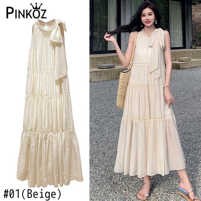 Pinkoz ベージュパッチワークアウトベージュホルタータンクミディドレスファッションパーティーナイトルーズドレス Vestidos ヴィンテージローブ ピンク ビンテージ