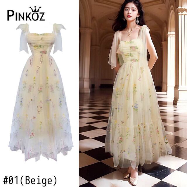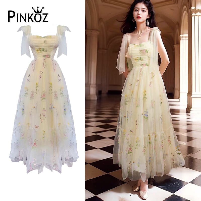 Pinkoz デザイナーヴィンテージビクトリア朝メッシュフラワー刺繍レースアップマキシドレスぬるぬるヴィンテージ高級パーティー Vestidos ファッション za ピンク フラワーデザイン ビンテージ