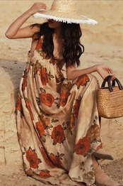 Pinkoz 滑走路デザイナードレス花柄スパゲッティストラップマキシホリデーシックフェスティバルビーチルースドレスカジュアルバックレス ピンク