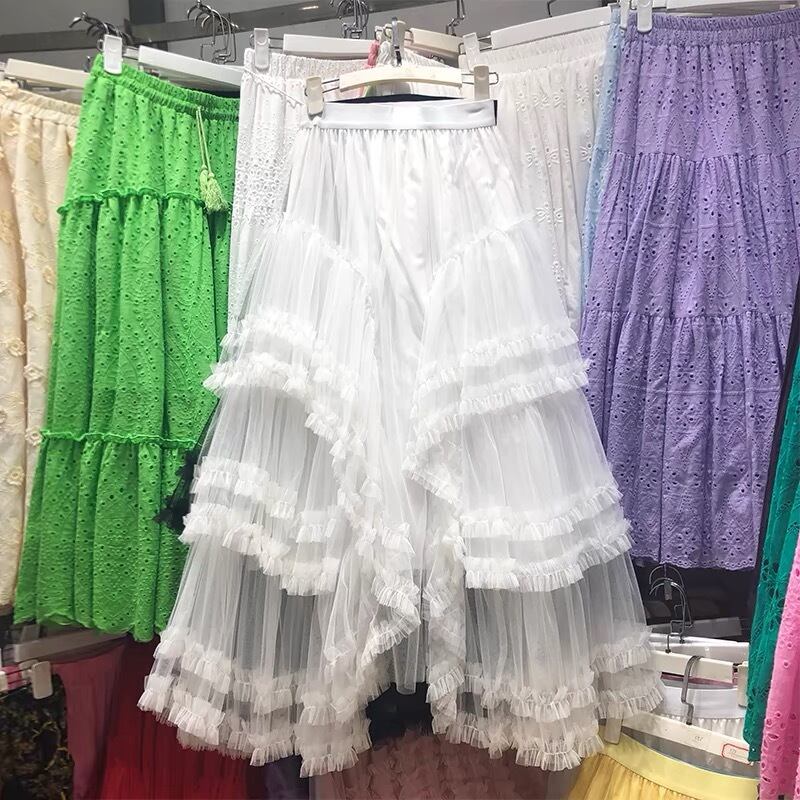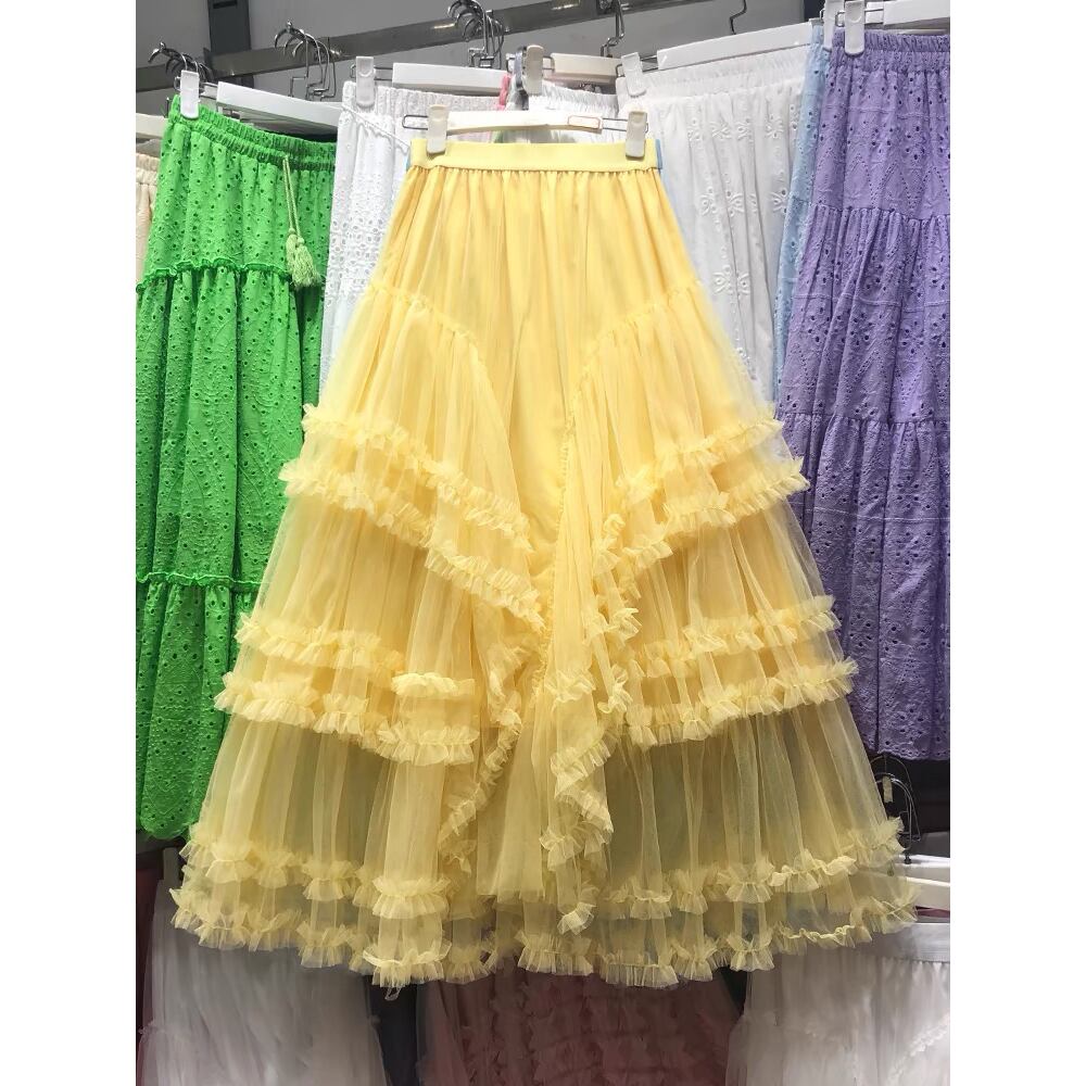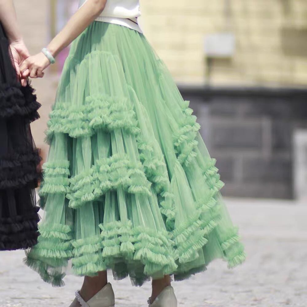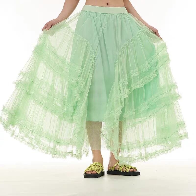 Pinkoz デザイナースタイリッシュグリーンシャーリングメッシュマキシスカート弾性ウエストパーティーホリデーナイトファッション衣類 faldas mujer ピンク エラスティック 伸縮