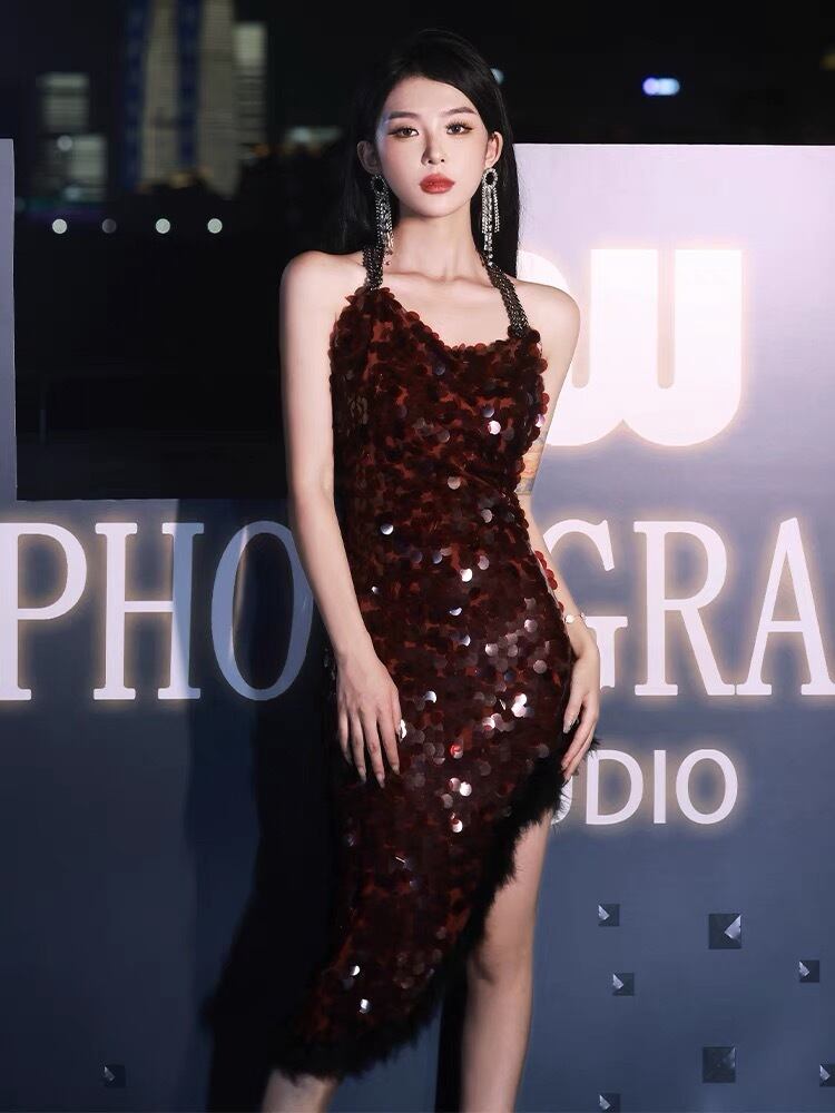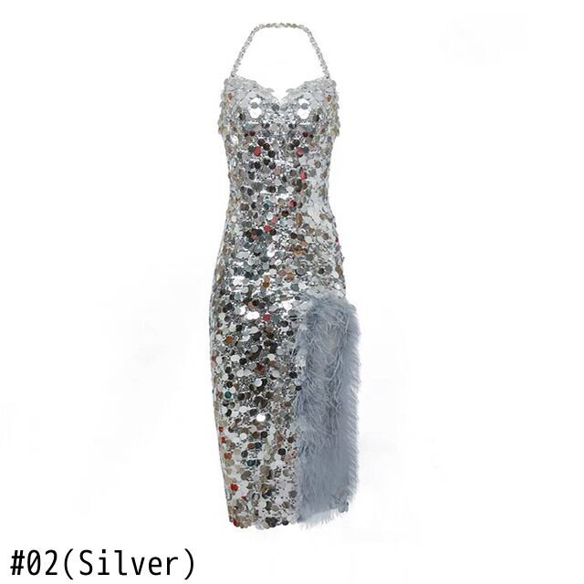 Pinkoz 滑走路デザイナーセレブスタイリッシュシルバースパンコールホルター高級パッチワークディナードレスぬるぬる非対称 Vestidos ローブ ピンク 銀