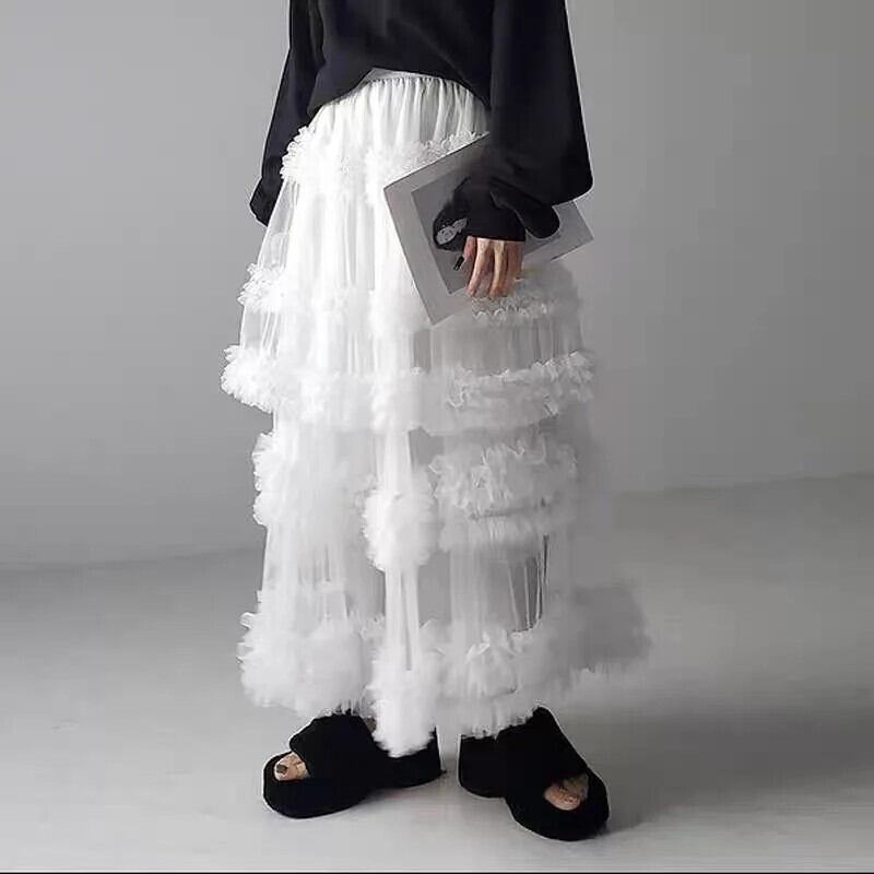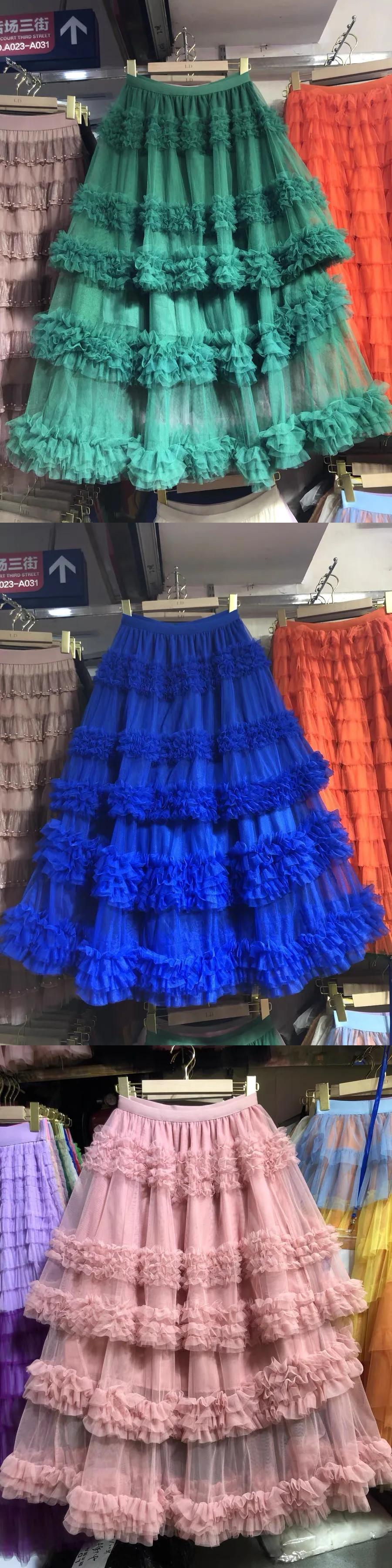 Pinkoz デザイナースタイリッシュピンクシャーリングカスケードレイヤードミディロングスカートパーティーナイトフリルファッションファルダトラフィック レッド ラッフル