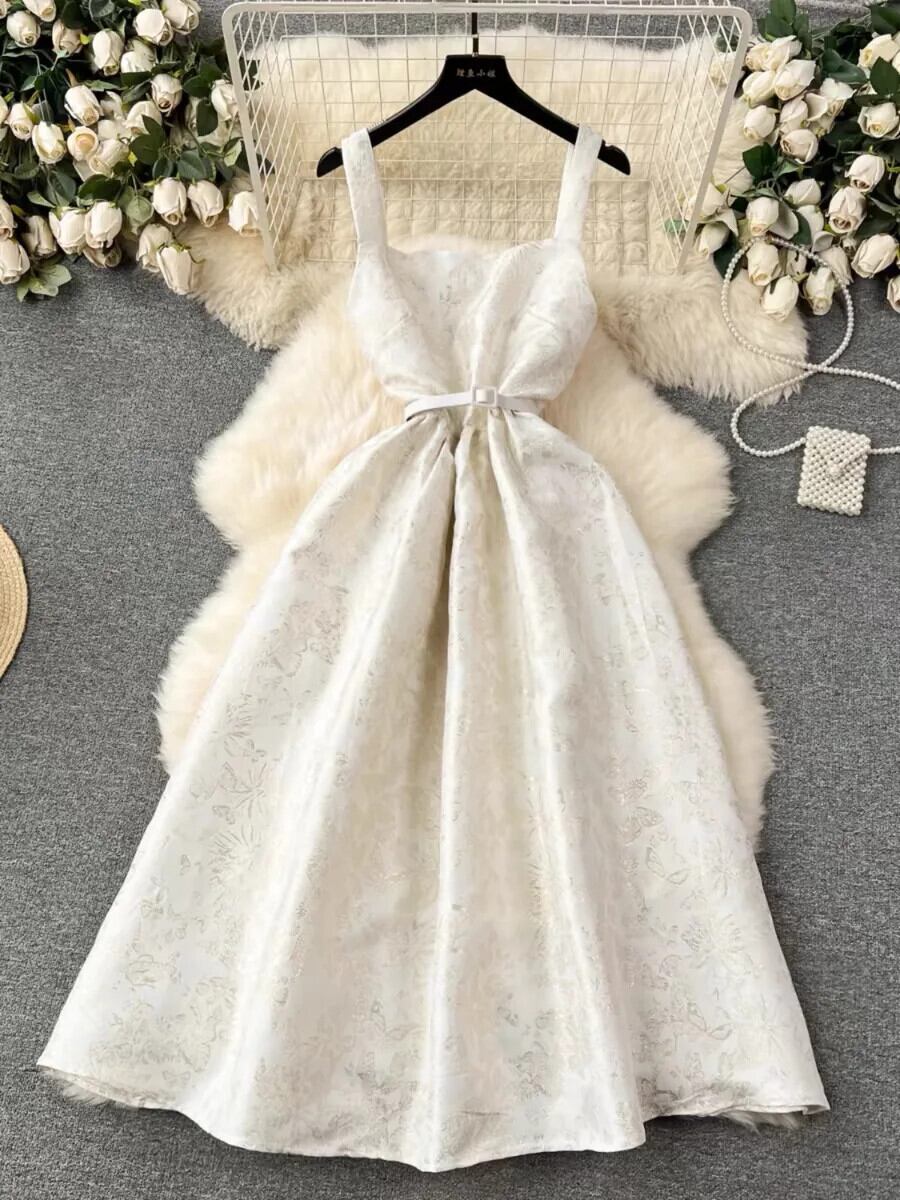 Pinkoz デザイナースパゲッティストラップ A ラインスタイリッシュミディドレス夏春パーティーディナー Vestidos エレガントヴィンテージ ピンク スプリング 春物 サマー 夏物 Aライン ビンテージ