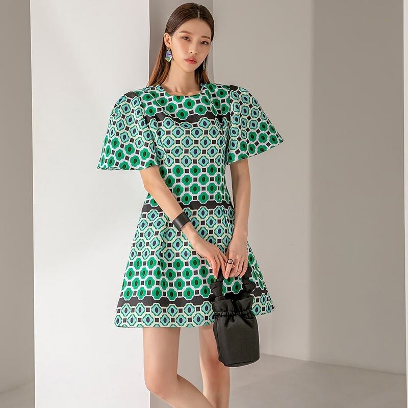Pinkoz ファッション衣類 o ネック A ラインミニドレスグリーンチェック柄花柄春夏シック自由奔放生きるドレスvestidos ピンク スプリング 春物 サマー 夏物 Oネック Aライン