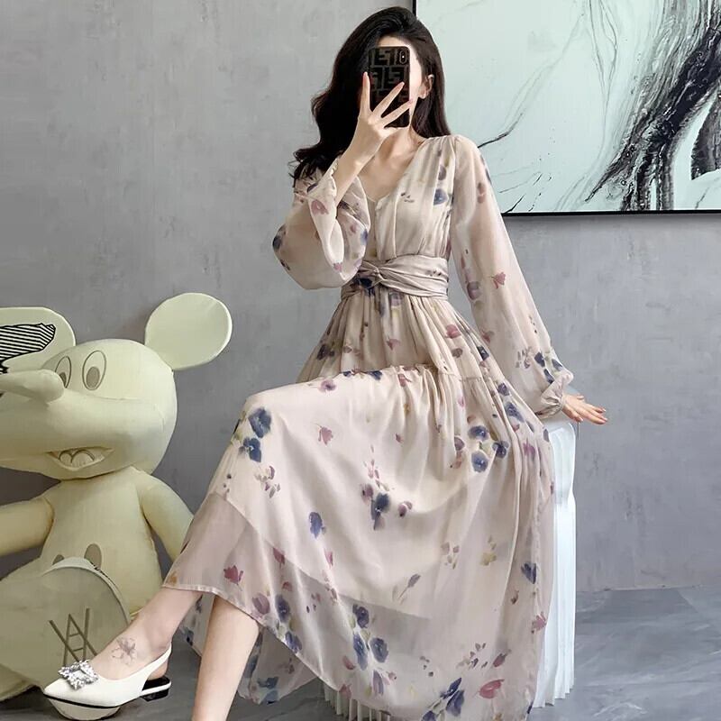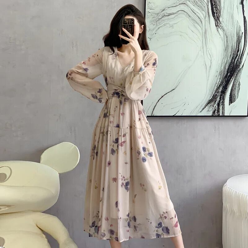 Pinkoz ファッション衣類春夏花柄プリントエレガントミディナイトドレス自由奔放生きるホリデードレス ピンク スプリング 春物 サマー 夏物