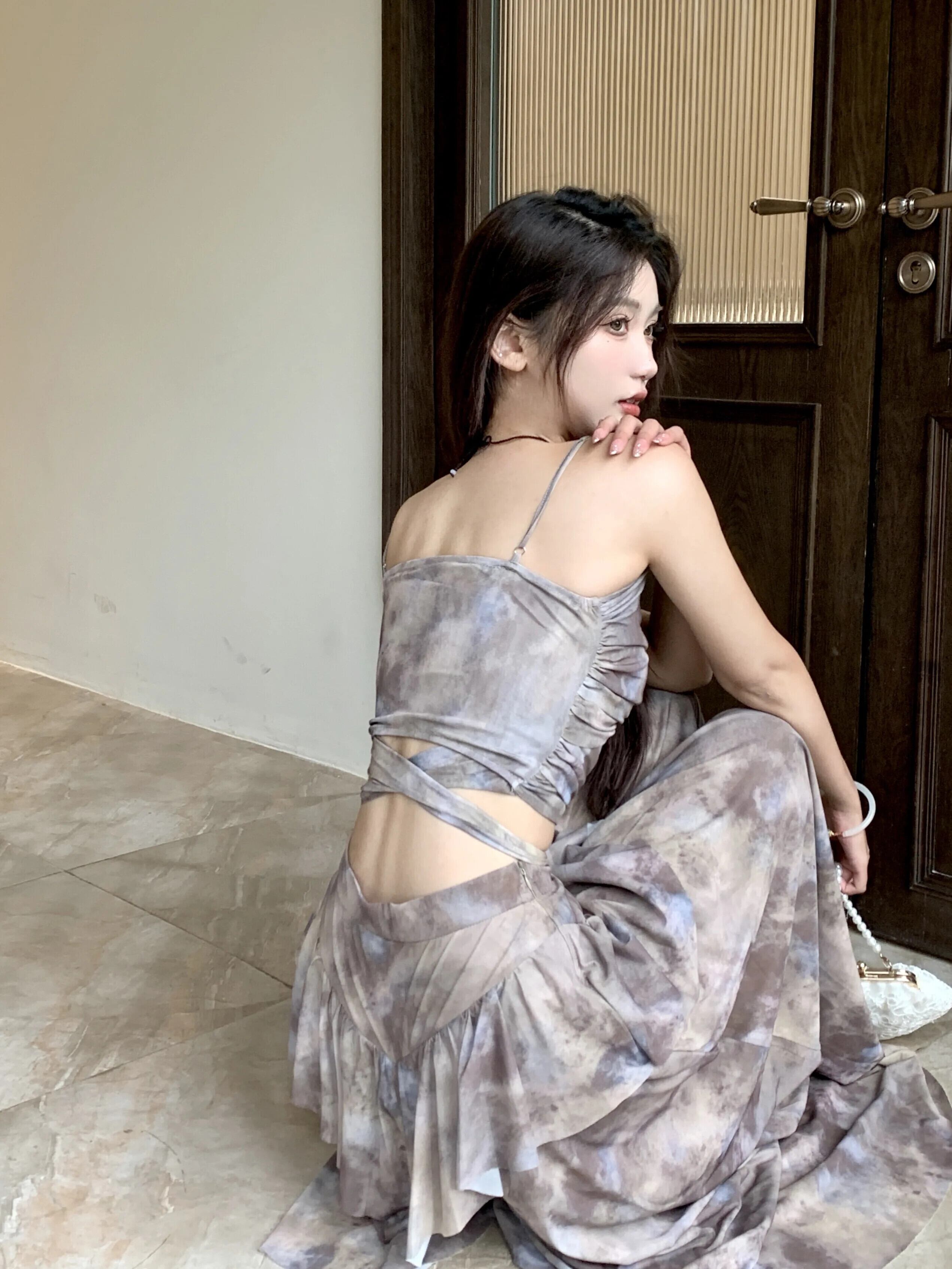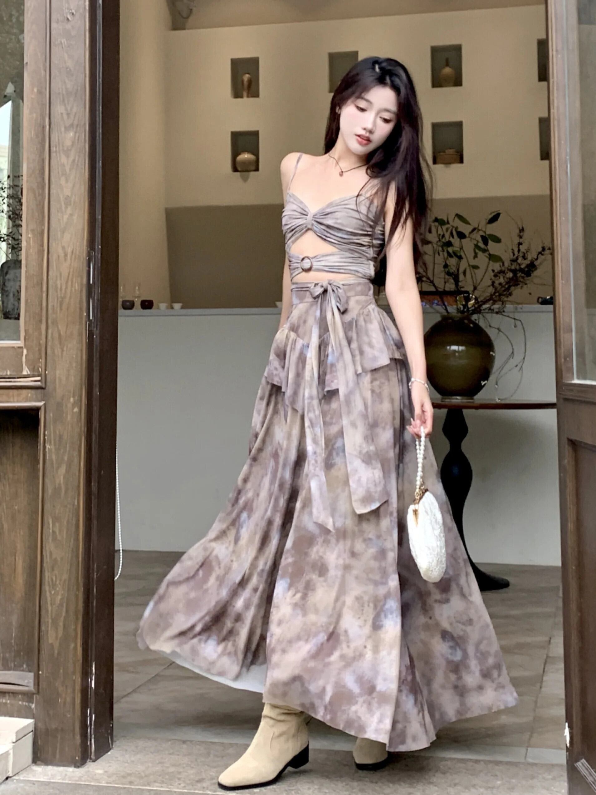 Pinkoz 花柄プリント 2 個セットスパゲッティストラップキャミソールタンクマキシロングスカートファムホリデーシックスーツ ピンク フェミニン