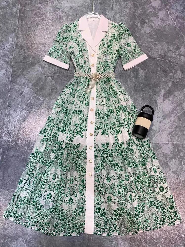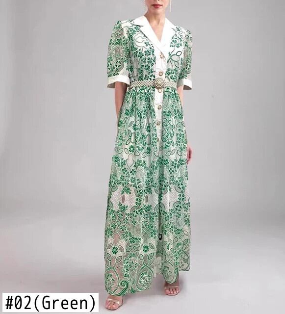Pinkoz ランウェイデザイナー高級レース刺繍シングルブレストマキシドレス春夏新作パーティーエレガントドレス ピンク スプリング 春物 サマー 夏物